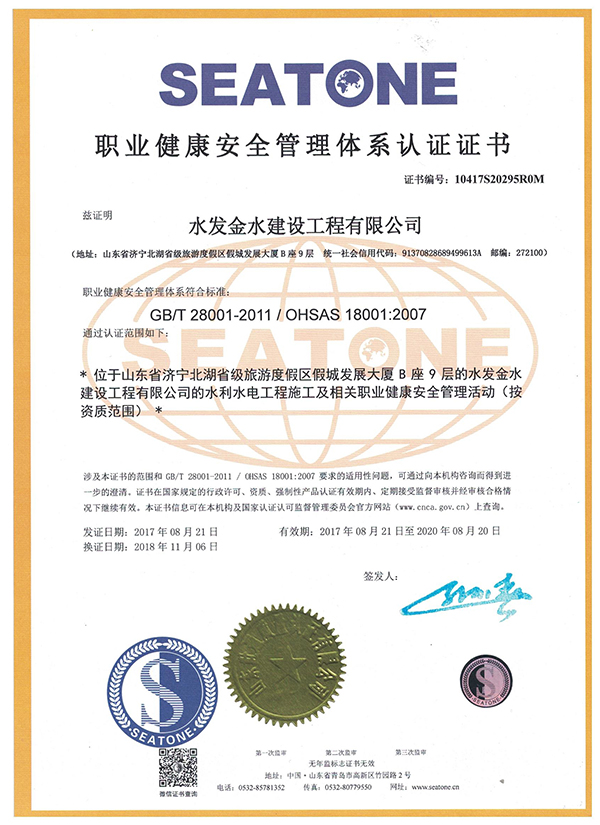 水發(fā)金水建設工程有限公司 三體證書-職業(yè)