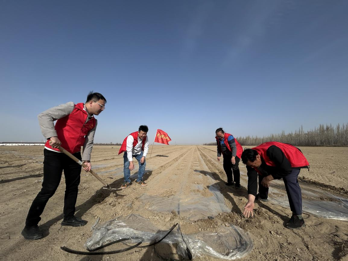 雙河水發棉業公司中片區黨員突擊隊深入春耕生產第一線,開展“春播黨旗紅”助農志愿服務活動。